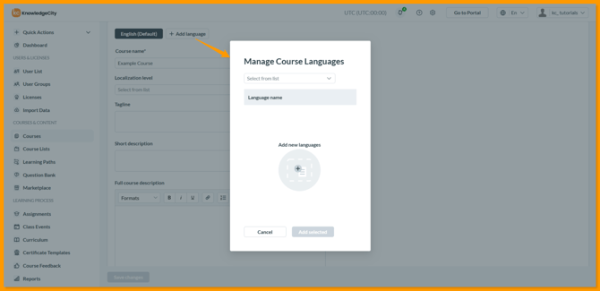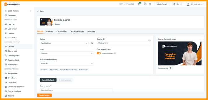 The Courses feature of the KnowledgeCity LMS allows you to create and manage courses for your learners. This guide covers the first step in building a custom lesson course, creating the course shell and configuring its core details. You will learn how to access the courses section, set up a new Lessons type course, define basic information like the author and difficulty level, and add multiple language versions.