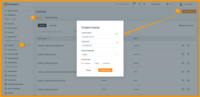 Creating your own custom courses with lessons in KnowledgeCity LMS