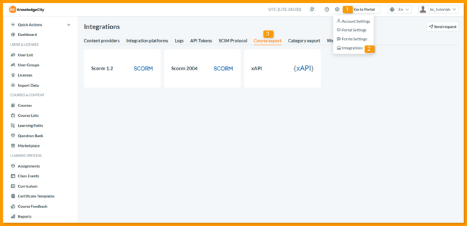Go to LMS Settings > Integrations > Course export.