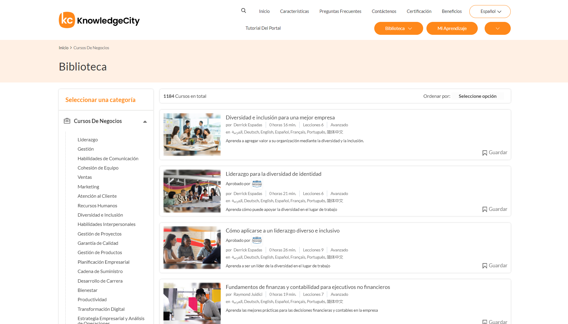 Un ejemplo ilustrativo de la categoría de Cursos de Negocios en la Biblioteca de Aprendizaje.