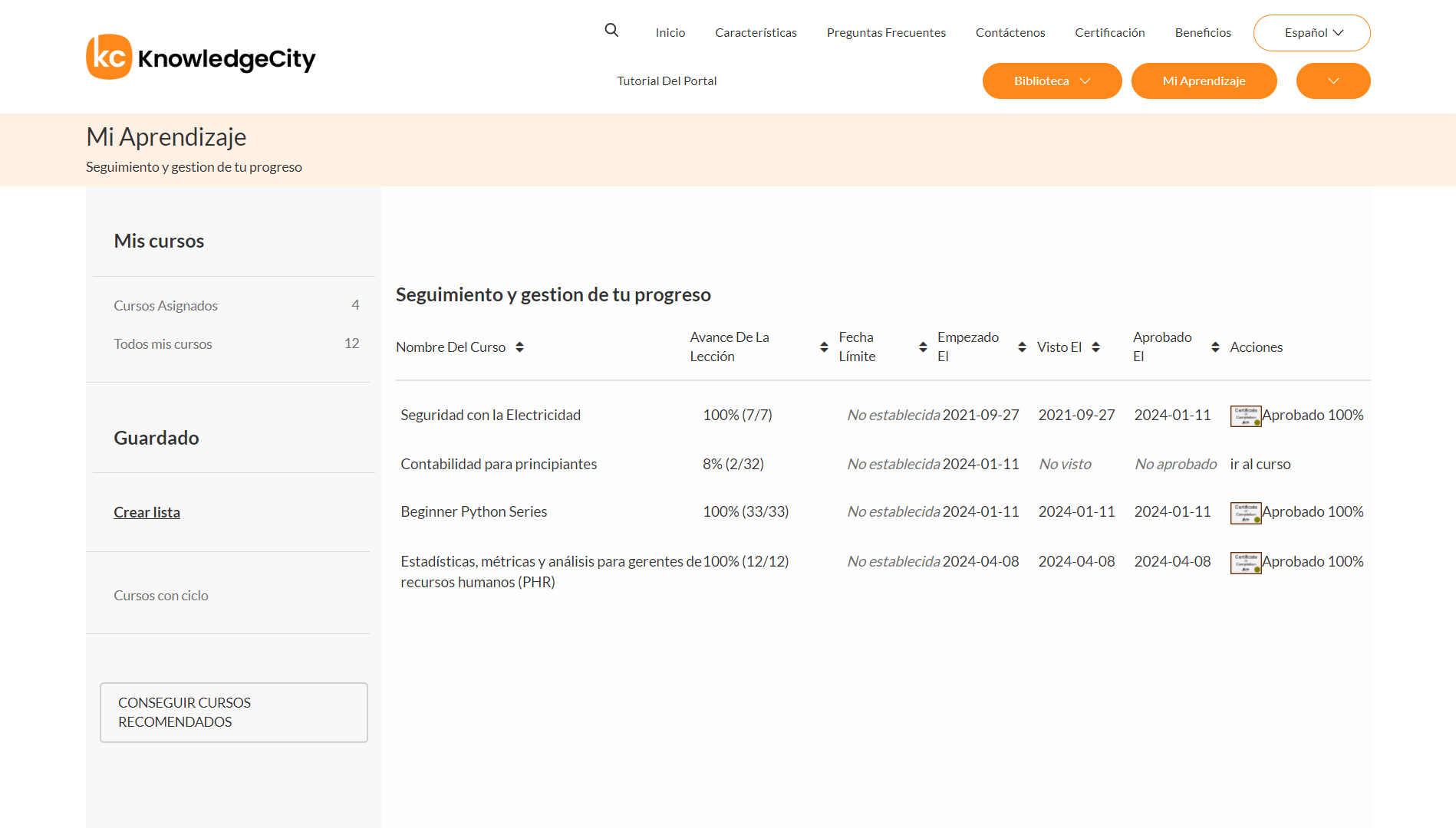 Guía del Portal de Aprendizaje de KnowledgeCity