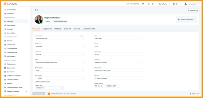- Navigate to the User List by selecting it from the left side panel of the LMS.